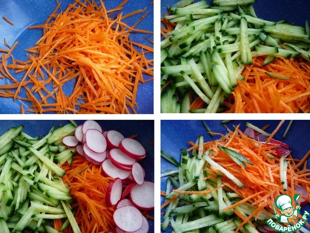 Рецепт «Салат из моркови, огурца и редиса»: