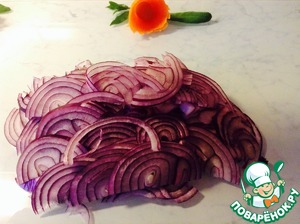 Красный лук режем полукольцами