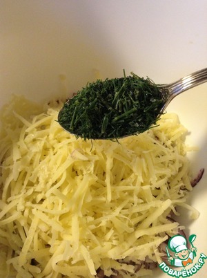 Сыр натираем на крупной терке