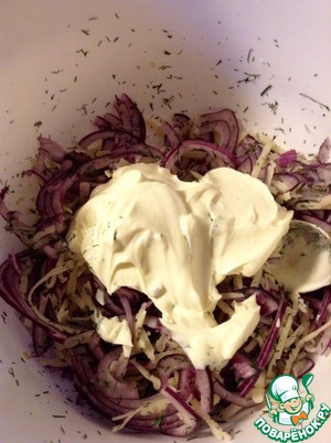 Рецепт «Салат "Красные полукольца в крапинку"»:
