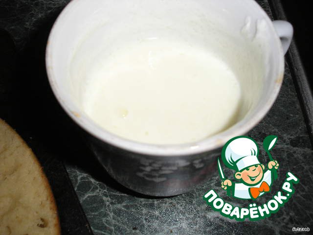Приготовить пропитку (сахарный сироп). В нагретую воду всыпать сахар и размешать до растворения сахара.