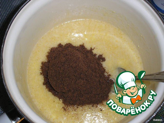 Растопить маргарин, остудить, чтобы он был теплый (не горячий!), всыпать черемуху и перемешать.