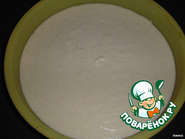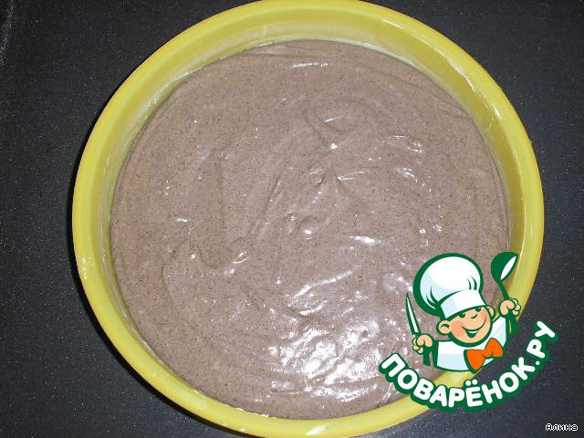 Добавить 6 столовых ложек муки, довести тесто до однородной массы и вылить в форму (у меня силиконовая форма). Если использовать не силиконовую форму, то предварительно смазать ее маргарином или застелить бумагой для выпечки.
