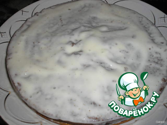 Поставить на 5 часов в прохладное место (я пекла торт вечером, он стоял в холодильнике 10 часов).
