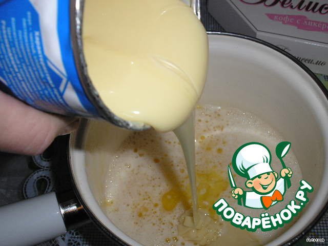 - Молоко сгущенное (для черемухового коржа-1/2 бан. ; для сливочного коржа-1/2 бан.) — 1 бан.