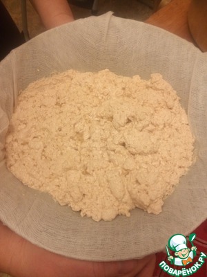 ... и оставляете стекать. Ваша задача - сделать творог из ряженки:)
