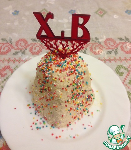 Пасочницы у меня нет, мы так, по-простому:) Украшал сын.