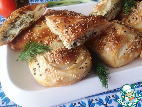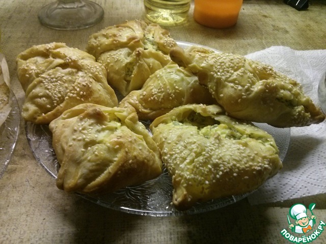 Какое шикарное слоистое тесто!!! Я делала обычные плацинды на кефирном тесте. Ну, лепешечка и лепешечка.... Вкусная, конечно. А тут, прямо-таки, пироги маленькие слоеные получились. Очень нравится их вид!!!!