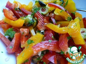 Добавить заправку к перцам, перемешать. Соль по вкусу.