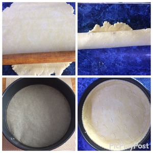 Тесто для киша я готовила по вот этому рецепту, которым уже делилась http://www.povarenok .ru/recipes/show/128 279/. Раскатываем тесто и укладываем в форму, застеленную пекарской бумагой. Формируем бортики.