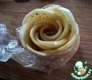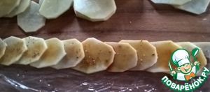 Можно укладывать пластики картофеля сразу в формочку по кругу