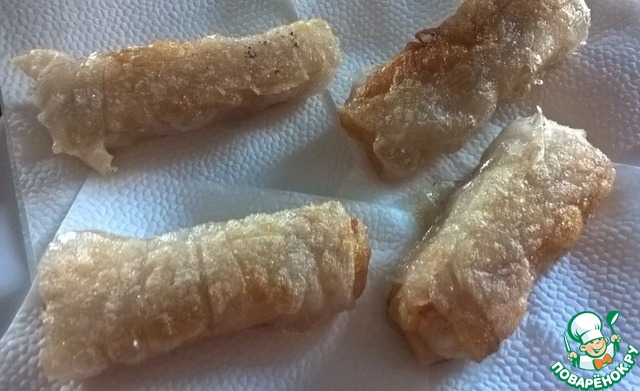 Подобные жареные "палочки" подавали во Вьетнаме с различными начинками. Я немного изменила начинку - сделала ее не острой и более простой... НО не менее вкусной