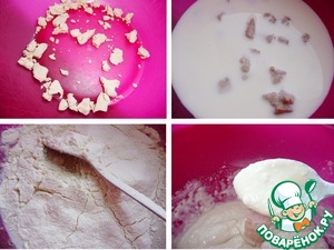 Дрожжи размять на небольшие кусочки. Влить теплое молоко, добавить сахар, перемешать. Добавить муку. Замесить жидкое тесто и оставить в тепле, чтобы опара поднялась.