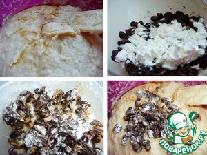 Ром от изюма слить в тесто. В изюм добавить муку и крахмал, перемешать и добавить в тесто.