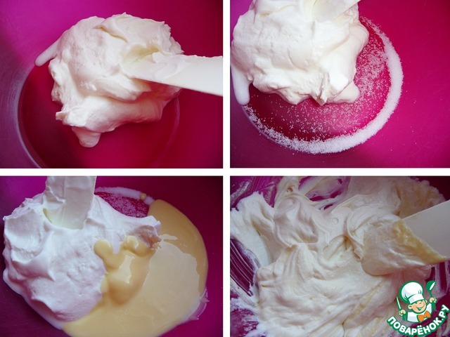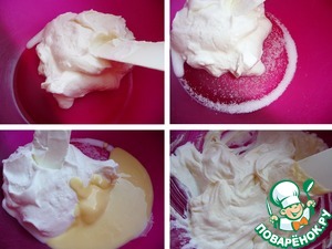 Готовим глазурь-мокрое безе. Белки взбить в небольшую пену, добавить лимонный сок и частями сахарную пудру, продолжаем взбивать. Миску с белками выставить на кипящую воду, следите, чтобы миска не касалась воды. Взбить до пиков 2-3мин. Глазурь, приготовленная таким способом, не превращается в сухую корку, остается влажной.