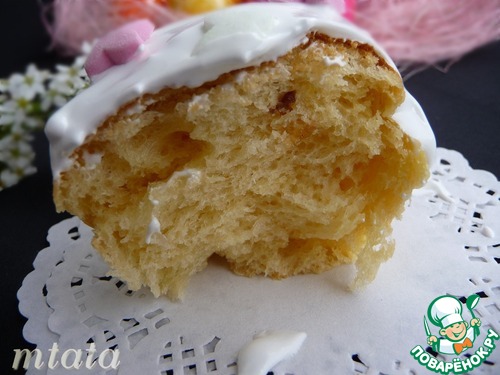 Остывшие куличи вынуть из форм, покрыть белковой глазурью.