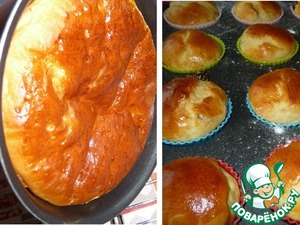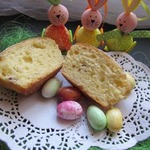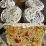 На сайте огромное количество различных рецептов по выпечке замечательных куличей. Я вам хочу предложить сдобные куличи с творогом. Тесто на эти куличи подходит немного дольше. Куличи получились в меру сладкие, влажноватые. Для любителей послаще, нужно кол-во сахара увеличить. У меня получилось 2 больших и 12 маленьких. Разрез очень красивый получился. Если вы ещё не готовили такие куличи, пробуйте, результат должен вас порадовать.