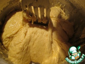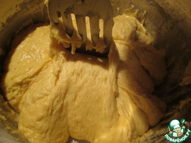 На этом этапе тесто больше похоже на кексовое, чем на дрожжевое.