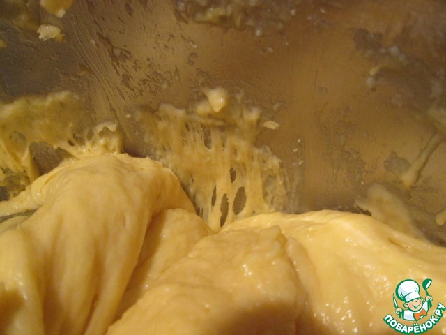После третьего или четвертого "складывания " появятся глютеновые нити. Это значит, что наше тесто созревает правильно.