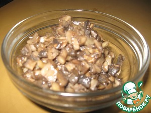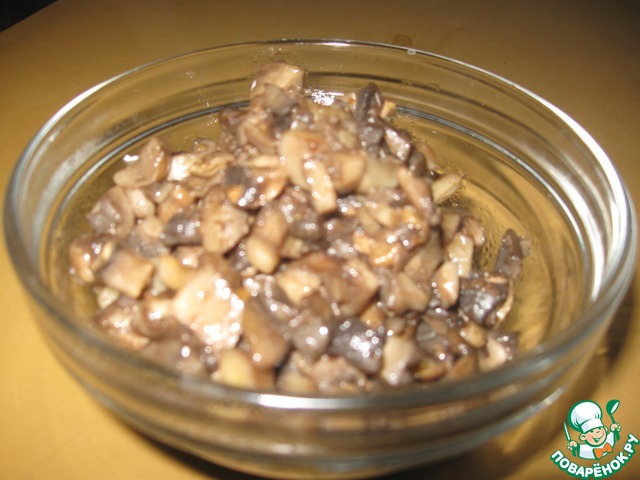 Грибы режем кубиком 5-10 мм и обжариваем. Солим и перчим по вкусу.