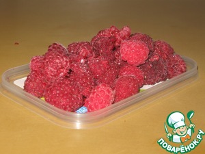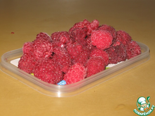 Малину, если она свежая, положить на час в морозилку. У меня замороженная.