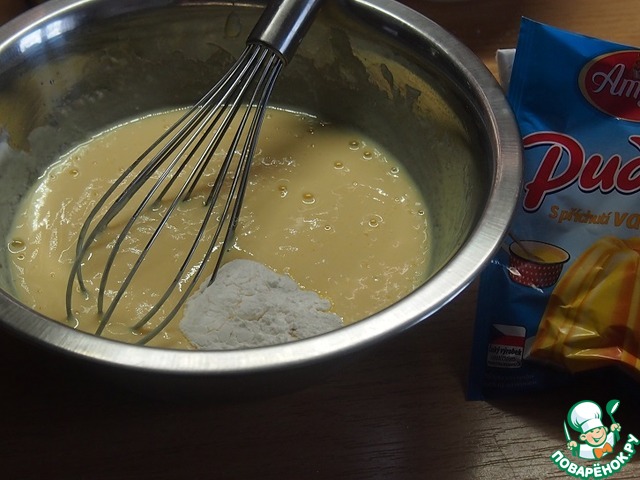 В другой миске смешать йогурт, мед, яйца, крахмал (или такое же количество ванильного пудинга).