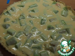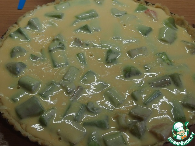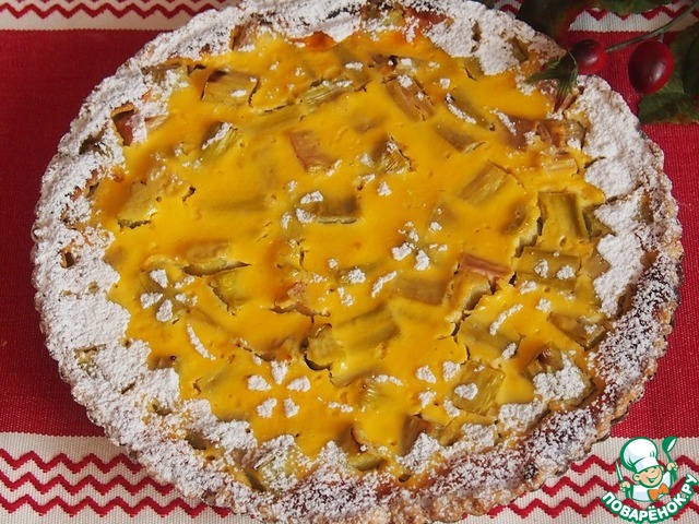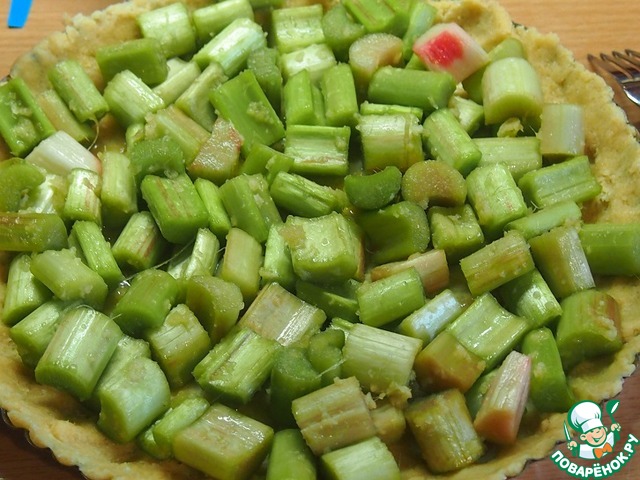 На тесто равномерно выложить ревень с имбирем и сахаром.