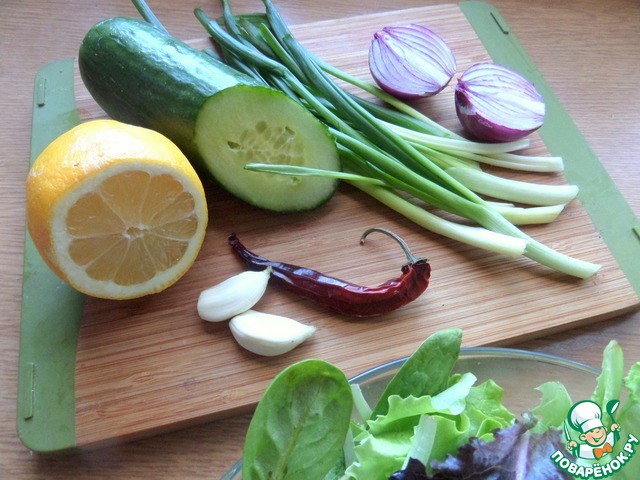 Ингредиенты для «Салат "Зелёный" с оливками и чипсами»: