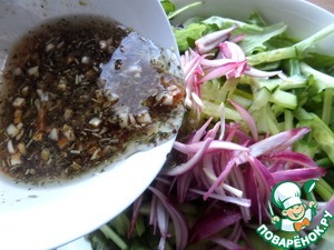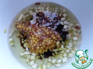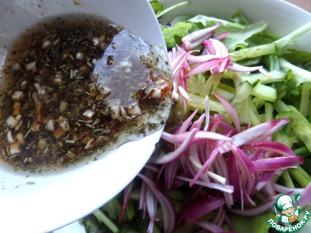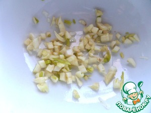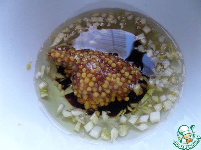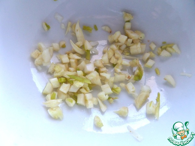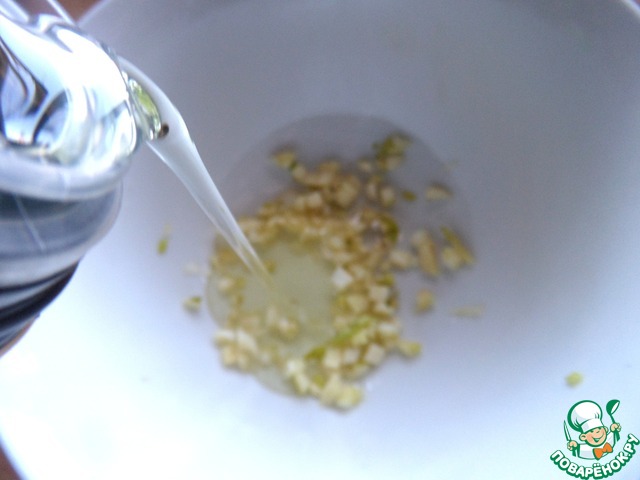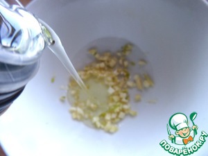 Делоаем заправку. Чеснок измельчить, можно вынуть сердцевинку, если очень острый.
