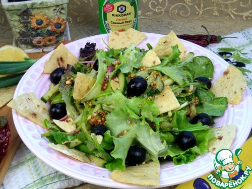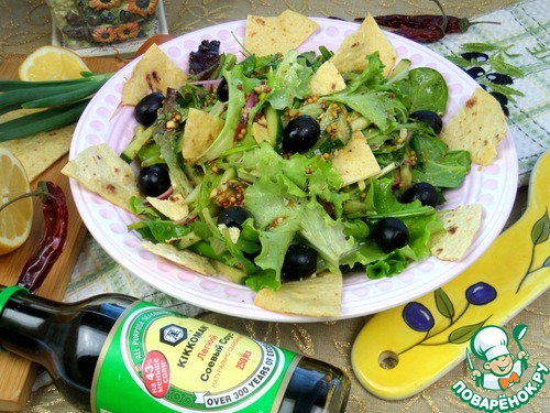 Рецепт «Салат "Зелёный" с оливками и чипсами»: