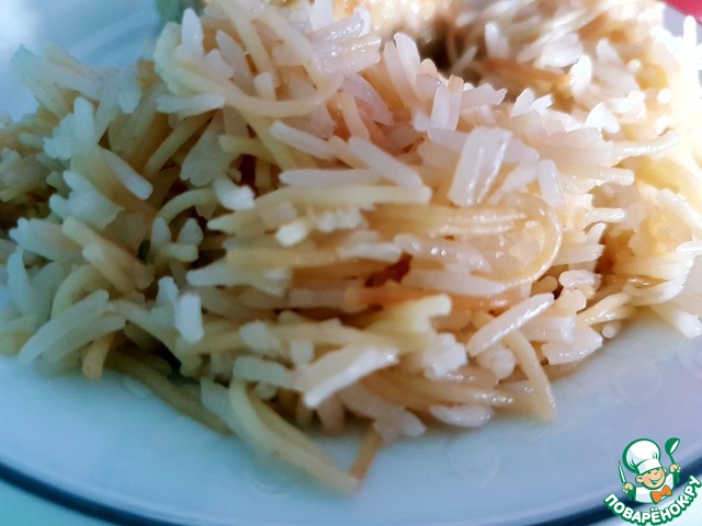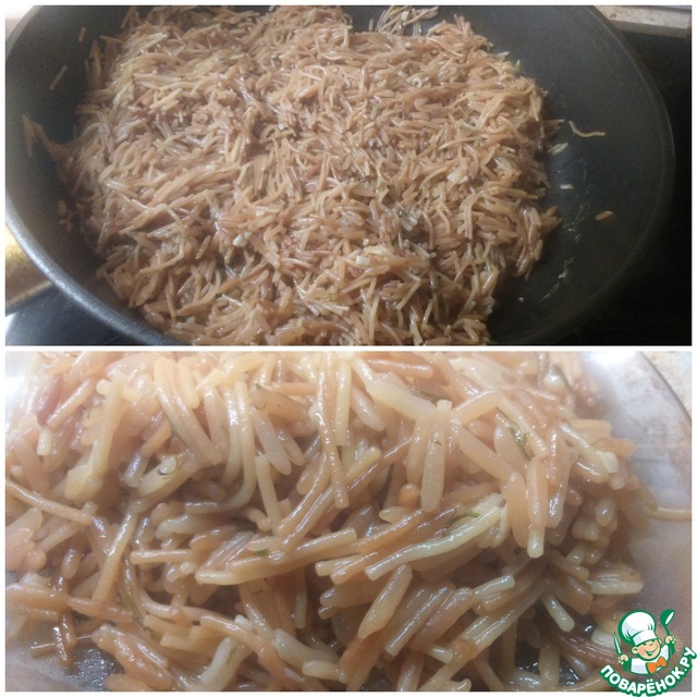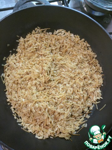 Надо сначала хорошо поджарить на масле чтоб рис побелел.А вермешель карамельный стала