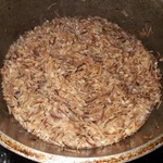 Осторожно вливаем воду и прибавляем огонь, чтобы содержимое казана закипело. Я наливаю холодную воду, казан и его содержимое достаточно раскаленные, так что вода быстро закипит, но можно влить горячую, если есть возможность.