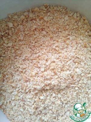 Печенье измельчаем через мясорубку, или с помощью измельчителя, или с помощью скалки.