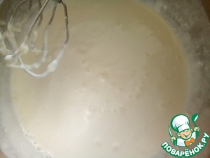 Ставим заготовку в холодильник на 30 мин. Готовим следующий слой. Замачиваем желатин в 100 г кипяченой холодной воды набухать. Читайте инструкцию на упаковке. У меня был обычный желатин и набухал в течении 30 мин.