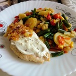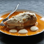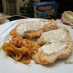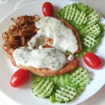 В инете встретился рецепт из куриной грудки (Автор Зоряна Ивченко). На его основе решила приготовить грудку индейки. Мясо индейки очень высоко ценится в диетологии. Оно нежное и маложирное, а также является рекордсменом по содержанию железа. Соус готовится на водяной бане, параллельно с жарящейся птицей. Процесс приготовления блюда очень быстрый. Мясо можно подавать с любым гарниром, мне понравилось с салатом из овощей.