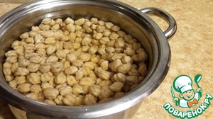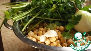 Перекрутить горох, лук, чеснок и кинзу через мясорубку.