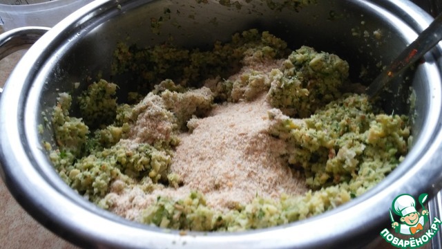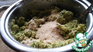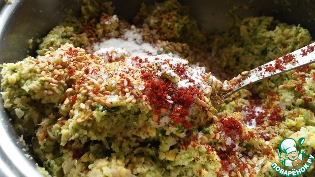 Добавить кунжут, зиру, паприку, соль, перец и разрыхлитель. Все хорошо перемешать. Теперь добавляем молотые сухари по чуть-чуть. Может потребуется меньше или больше, зависит от влажности нута. После охлаждения наша масса немного застынет. Поэтому на этом этапе лучше сухари не доложить. Всегда можно добавить после охлаждения.