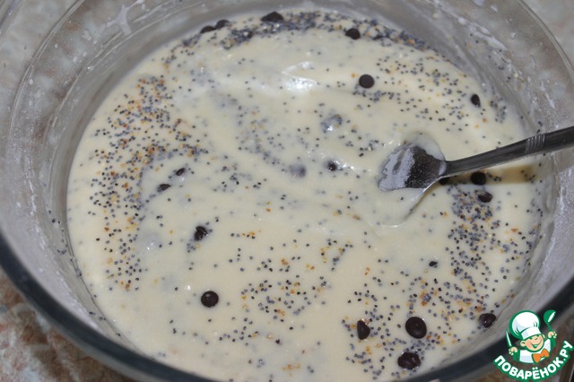 Добавляем мак, шоколадные капли, цедру, количество берем по своему усмотрению. Если будете добавлять изюм, то его надо обвалять в муке. |