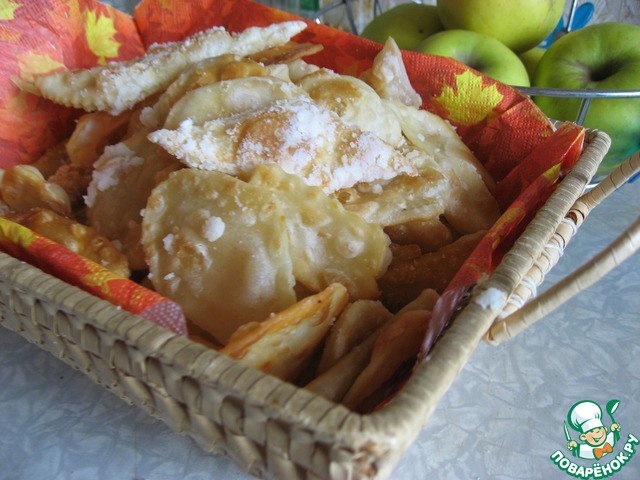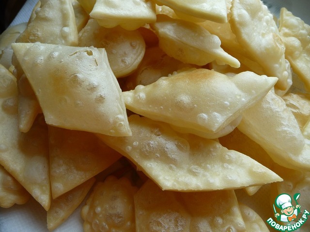 Предлагаю простой рецепт выпечки, похож на хворост, но и не он. Тесто без сахара, слоистое, нежное. Лакомство хорошо с джемом, вареньем, шоколадной пастой. Подойдет и к бульону.