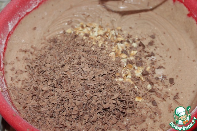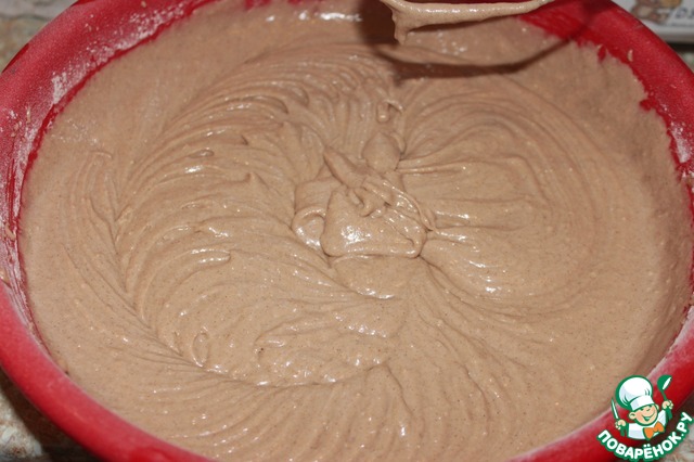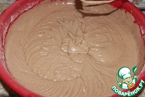 Всыпаем муку, смешанную с какао и ванильным сахаром, замешиваем тесто.