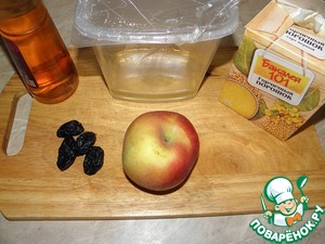 Соединить запеченное яблоко, мягкий чернослив, подогретый мед с уксусом, каплю соли, добавить сухую горчицу