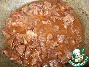 В казан налить масло, добавить мясо и тушить на небольшом огне примерно час.