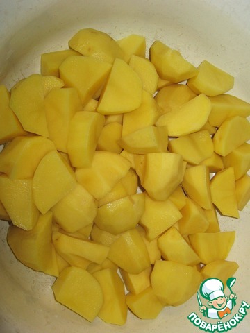 Почистить и помыть картофель, нарезать небольшими кубиками.
