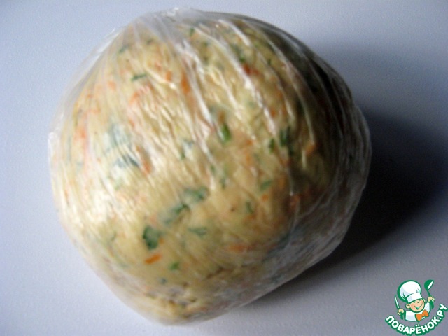 Тесто минут на десять убрать в пакет.
