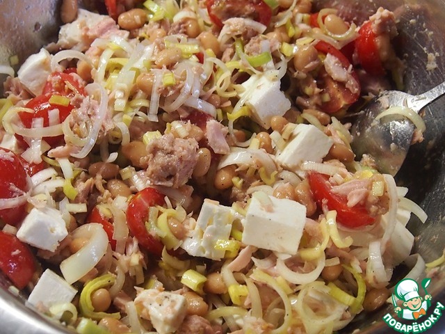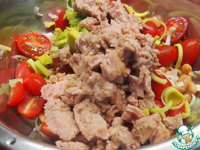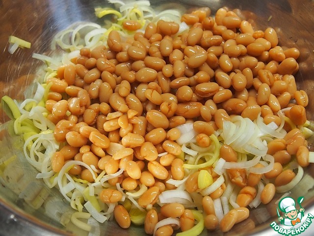 Добавить к нему сцеженную и промытую белую фасоль из консервной банки.