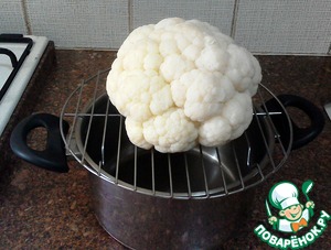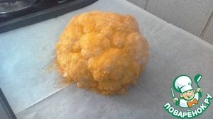 [+5]Никогда не запекала её целиком, это для меня в новинку, оказывается, отличный вариант приготовления и совсем не надо заниматься её разрезанием на соцветия. Любителям цветной капусты настоятельно рекомендую приготовить, это очень-очень вкусно!!! Из отступлений - не добавляла только бульонный кубик, а так всё по рецепту!!! Сверху присыпала тёртым сыром. До чего же вкусно получилось....ммм..ням-ням!!!