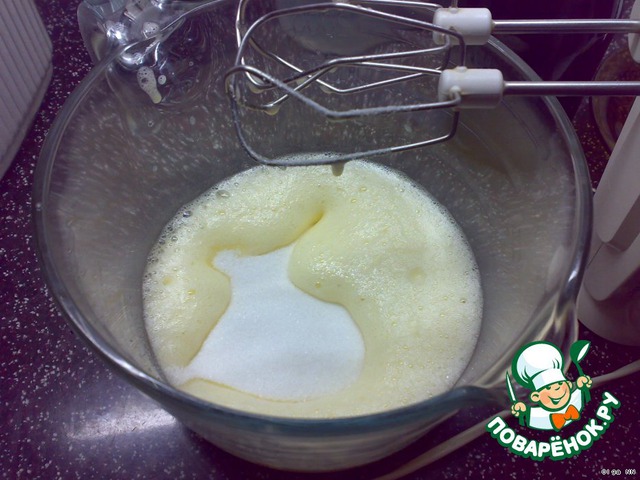 Добавляем сахар и еще раз взбиваем.