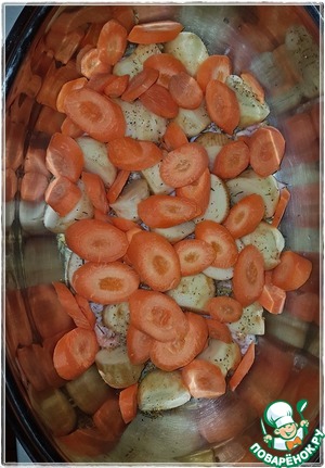 Морковку нарезать дольками - кружочками. Толщиной – сантиметр, максимум полтора.