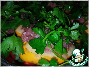 Зелень. Петрушка, кинза по паре веточек, укропу и одной ветки хватит.