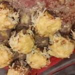 8. Сверху горкой уложить тёртый картофель в виде стога, затем посыпать тёртым сыром и смазать майонезом.